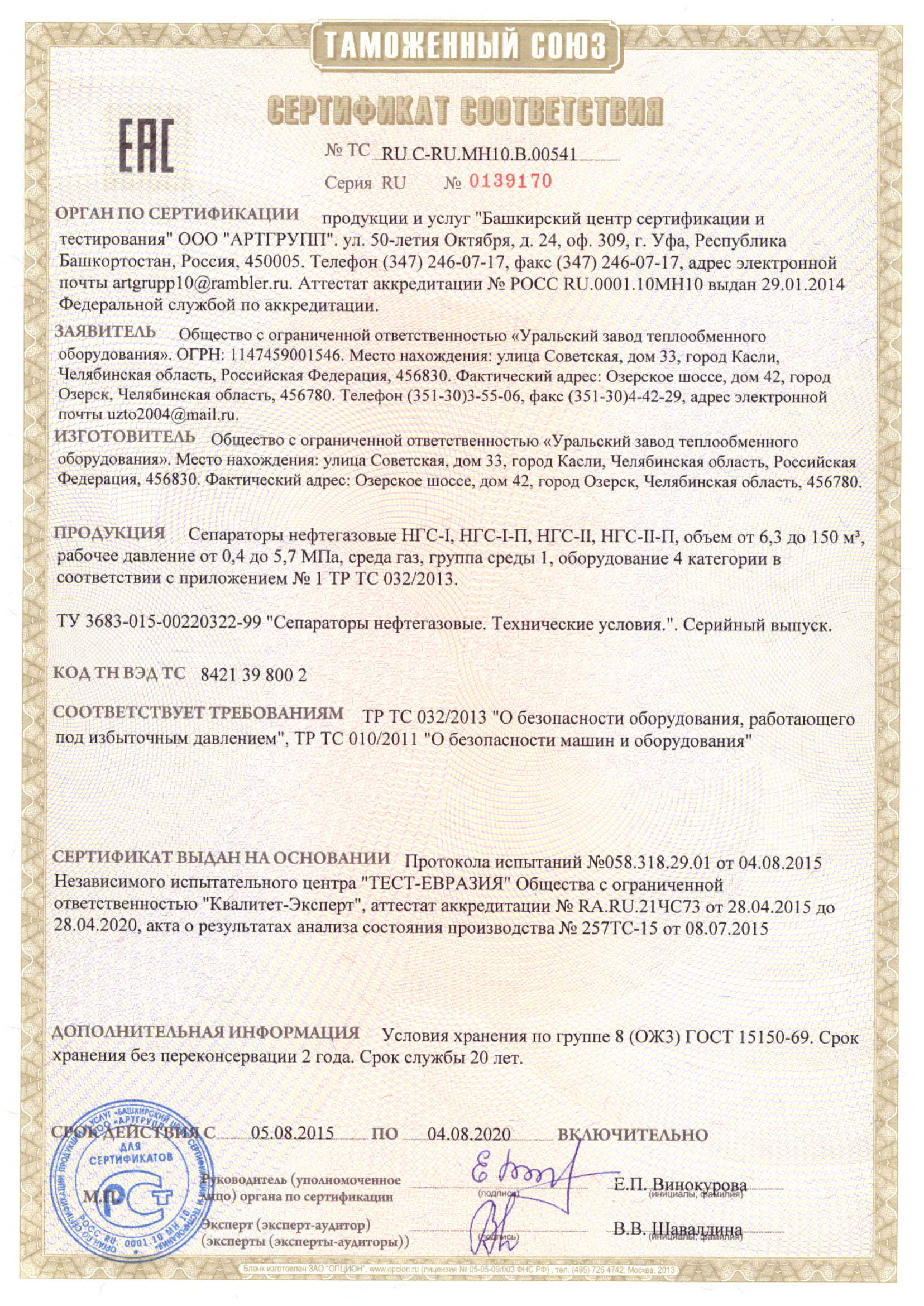 Сепараторы изготавливаются как по ТУ 3683-015-00220322-99, так и по индивидуальным требованиям, оговоренным в ТЗ или опросных листах.