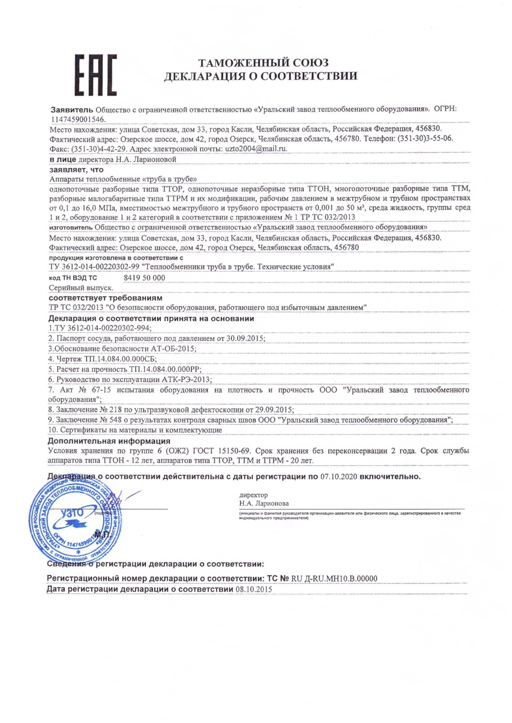 Теплообменники могут быт изготовлены как по ТУ 3612-014-00220302-99 так и по индивидуальным требованиям, оговоренным в ТЗ или опросных листах.