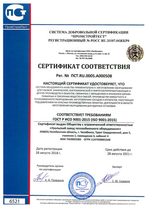 Система менеджмента качества сертифицирована по стандарту ГОСТ ISO 9001-2015 (ISO 9001:2015).